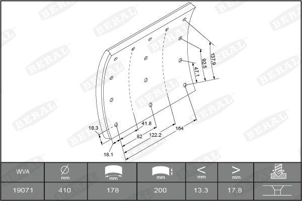 Накладки тормозные на ось 8шт Volvo 200мм BERAL (15508
